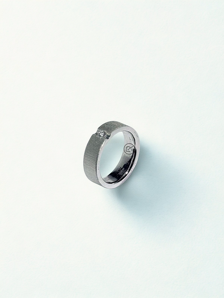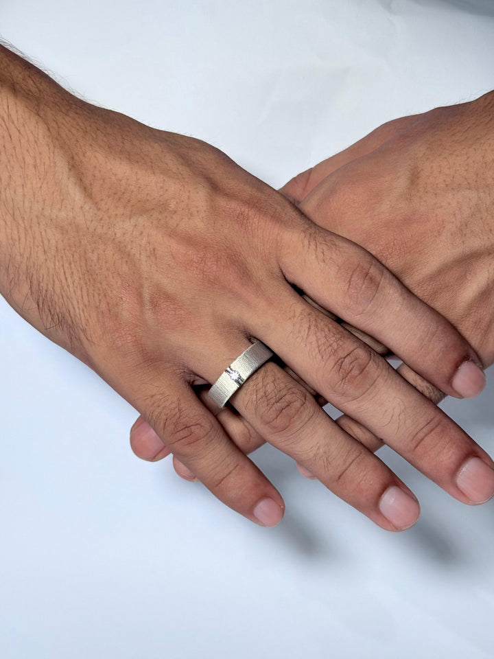 Duskmark is a men’s wedding ring that captures the subtle beauty of twilight with its matte, darkened finish. A refined choice for grooms who seek understated elegance.