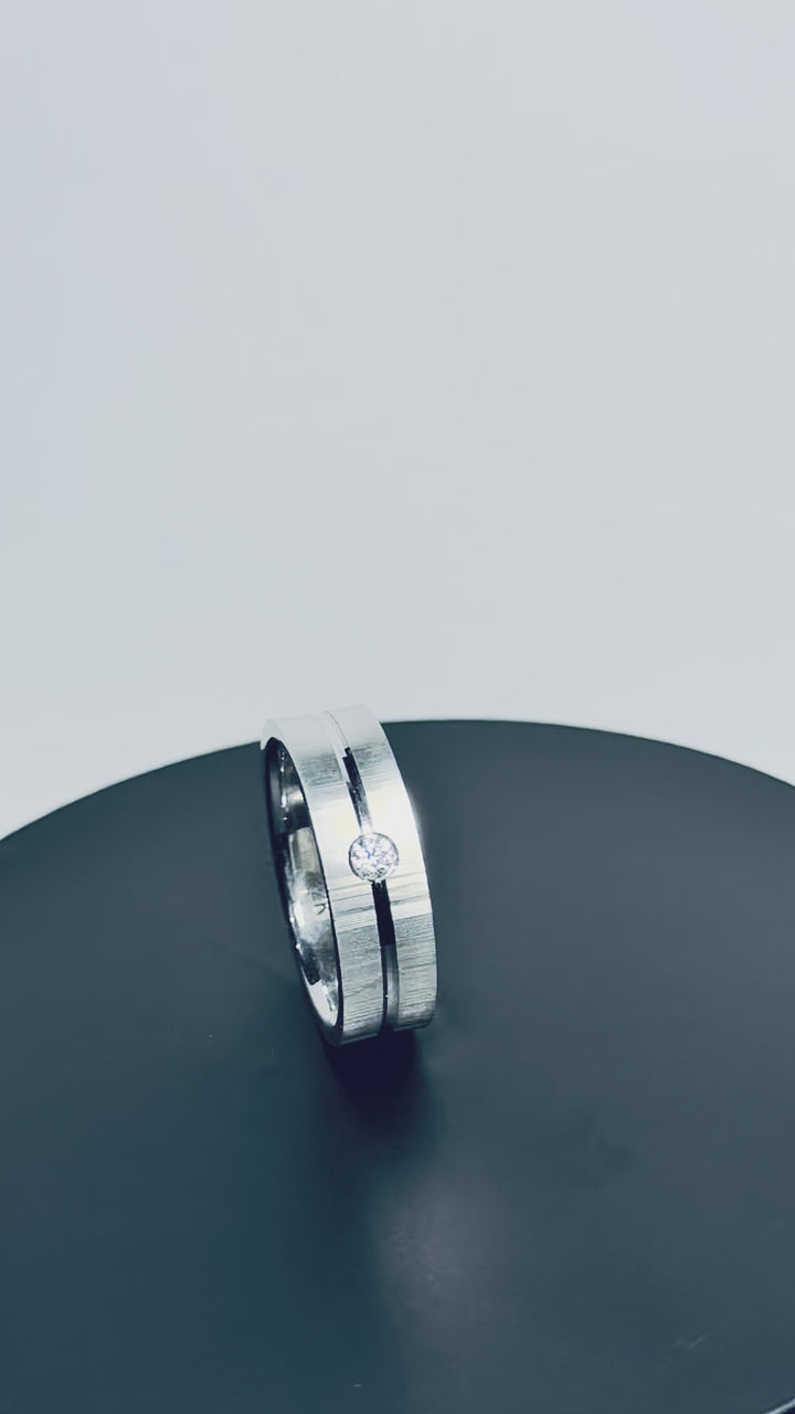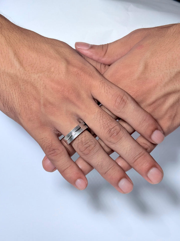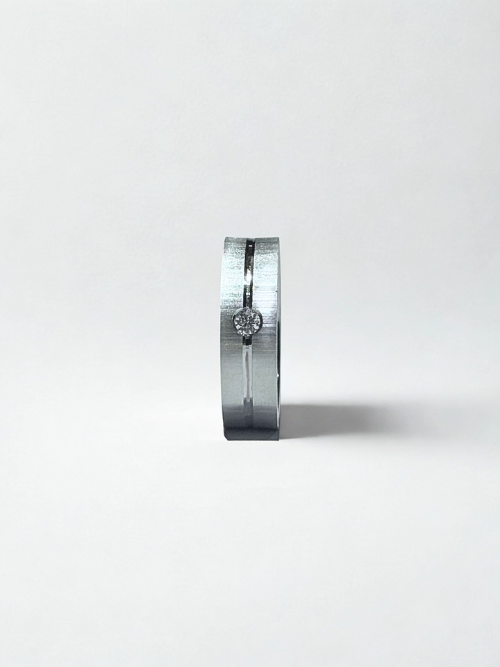 Ghostline is a men’s wedding ring with a minimalist etched line design, offering subtle sophistication. Ideal for grooms who appreciate modern, understated elegance.