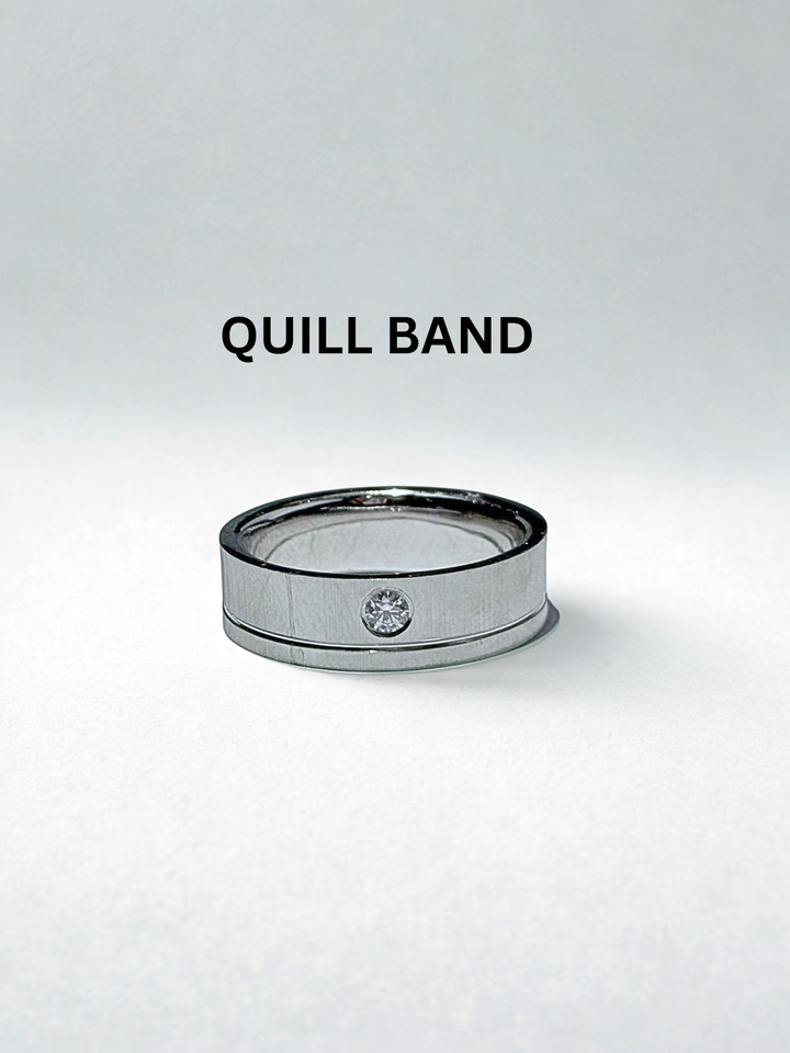 Quill Band is a men’s wedding ring inspired by the elegance of fine craftsmanship. Its subtle engraved pattern adds sophistication while keeping the design modern and versatile.